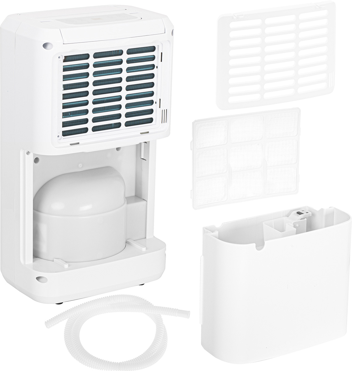 Komplektā iekļauta notekšļūtene nepārtrauktai mitruma novadei