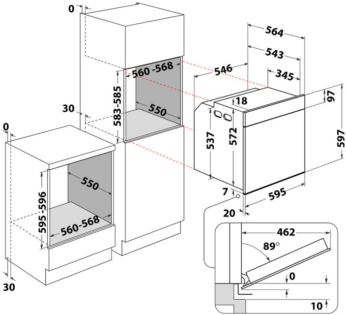 Встраиваемые размеры (Ш х В х Г) см