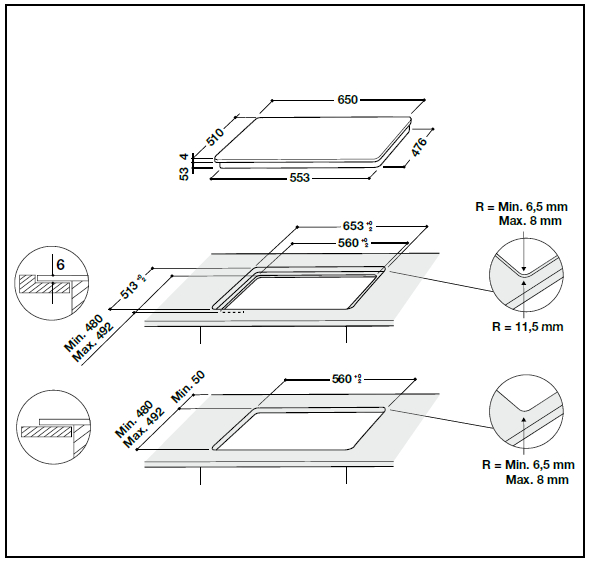 Размеры для встраивания, см (В х Ш х Г)