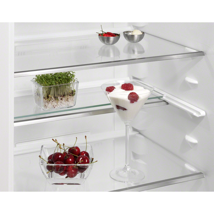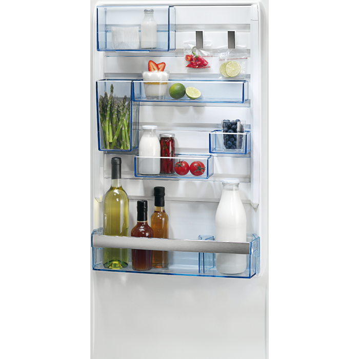 Patiecoties vienreizējajai CustomFlex™ glabāšanas sistēmai ledusskapja durvīs, jūs varat izkārtot plauktus, saspraudes un konteinerus vairākos simtos dažādu veidu. Tas nozīmē, ka jūsu produkti vienmēr tiks uzglabāti loģiski un efektīvi.